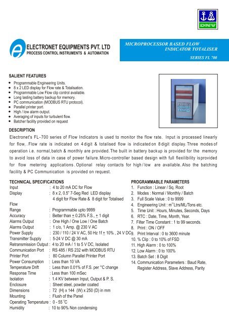 Flow Indicator Totaliser Fl 700 Rsa Automation Pvt Ltd