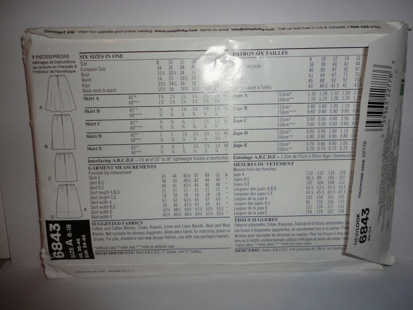New Look Sewing Pattern 6843 Misses Skirts Size A 8 10 12 14 16 18 Uncut Ff Ebay