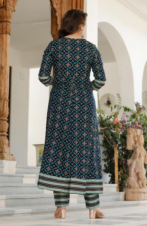 Clickedia Womens Fully Stitched Rayon Printed Anarkali Kurti With Gotta Patti Sequins And Chiffon Dupatta With Pants Jaipuri Salwar Suit Jiomart